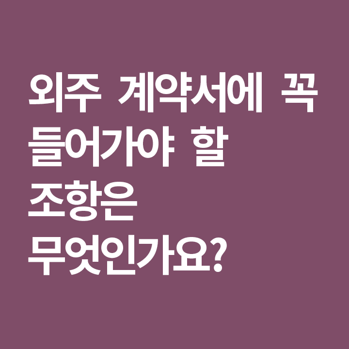 계약서에 꼭 포함하시길 추천드리는 내용은 "작업을 완료하지 못했을 때는 잔금을 지급하지 않고 작업물을 모두 인수할 수 있다"는 조항입니다. 이 조항이 있으면 외주사가 작업을 완료하지 못한 상황에서도 그동안 진행된 작업물을 확보할 수 있어, 다른 업체에게 이어서 작업을 맡길 수 있는 기반이 마련됩니다.